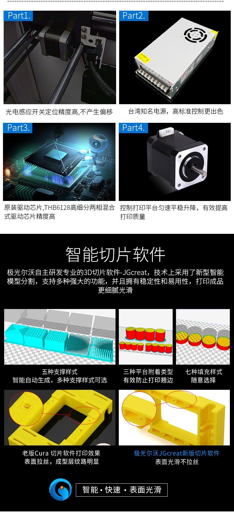 4.3英寸電容觸摸屏,清晰美觀,操作簡單;FA特制平臺,打印完成可取下平臺,輕松取模;模塊化一體式封閉設計,提高模型打印成功率;內置空氣過濾系統,有效濾除打印過程中產生的顆粒;具有暫停續打、斷電續打及斷料檢測等功能;高精度,大尺寸打印,可應對各種結構復雜的手辦模型