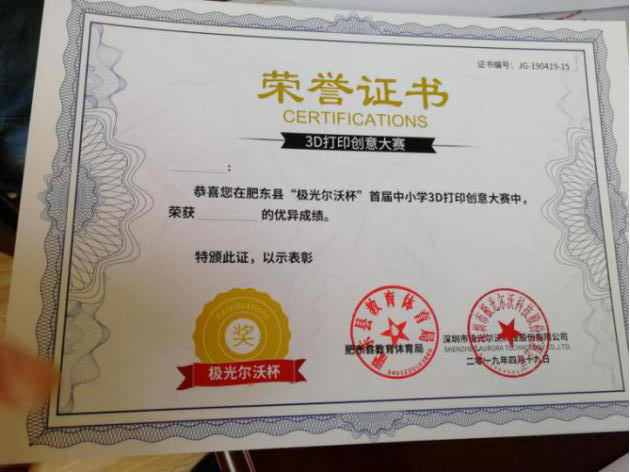 由深圳市極光爾沃科技股份有限公司和肥東縣教育體育局共同頒發(fā)的證書